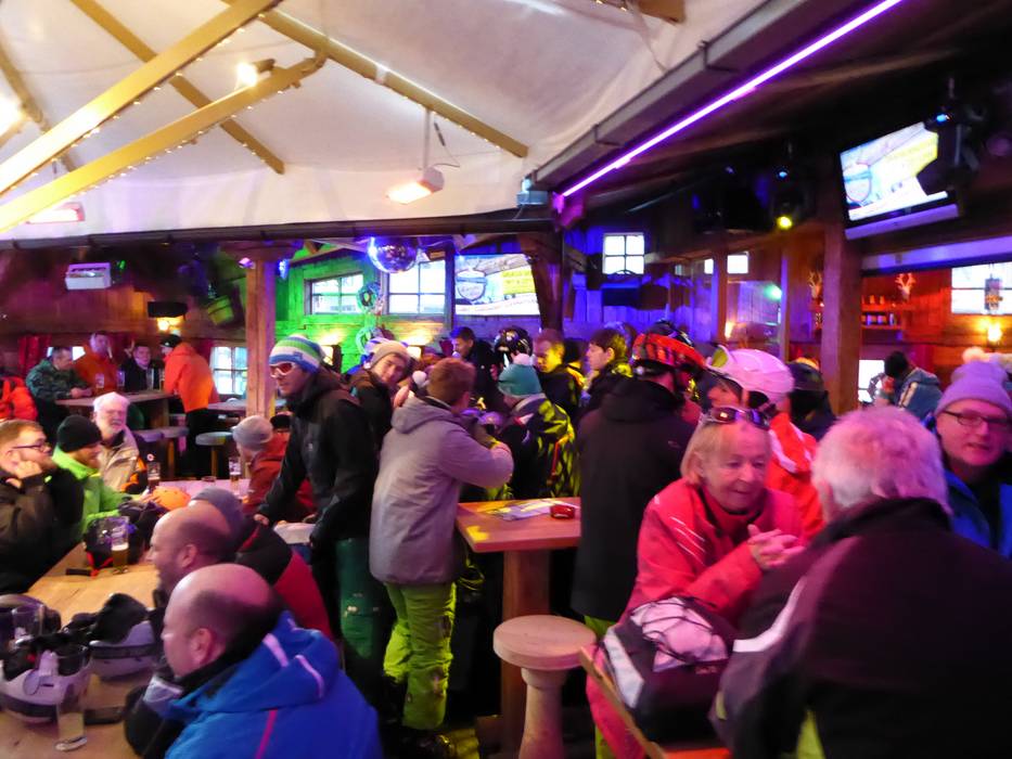 In der kleinen, gemütlichen Hütte wird Party mit Après-Ski-Sound geboten.