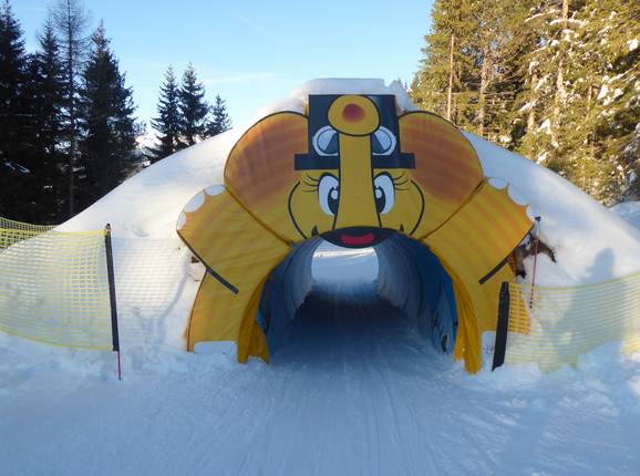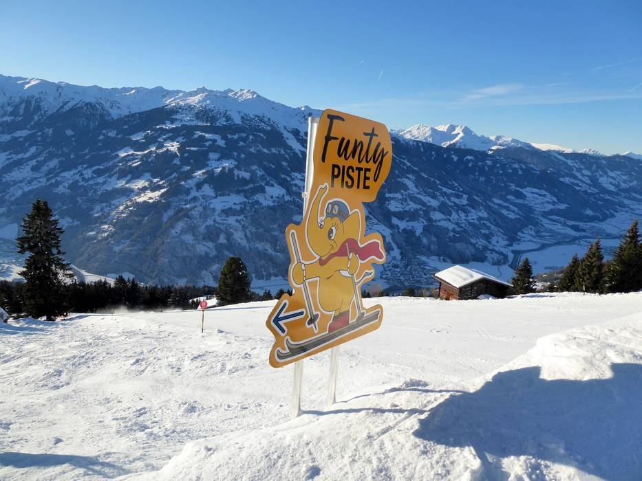 Die Funty Piste führt über gute 4 Kilometer von der Bergstation zur Mittelstation der Rosenalmbahn in Zell am Ziller. Es ist ein Spaß für die ganze Familie. Es warten lustige Hindernisse, Abklatsch- und Sound-Elemente sowie Tunnels und Slalomstrecken. Viele weitere Überraschungen runden die Spaßpiste ab.