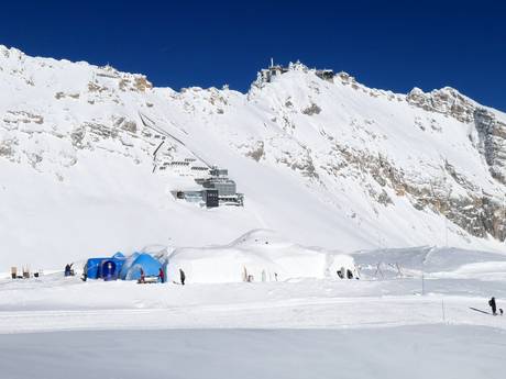 Oben auf der Zugspitze wird mit dem Iglu-Dorf eine einmaliges Erlebnis angeboten. Eine Nacht im Schnee. Neben der Talstation der Seilbahn Zugspitze befindet sich das Eibsee-Hotel, ein 4-Sterne-Hotel am wunderschönen Eibsee. An der Talstation der Tiroler Zugspitzbahn liegt das Zugspitz Resort, eine 4S-Sterne-Hotelanlage. Die Orte Garmisch, Grainau und Ehrwald bieten Unterkünfte verschiedenster Klassen.