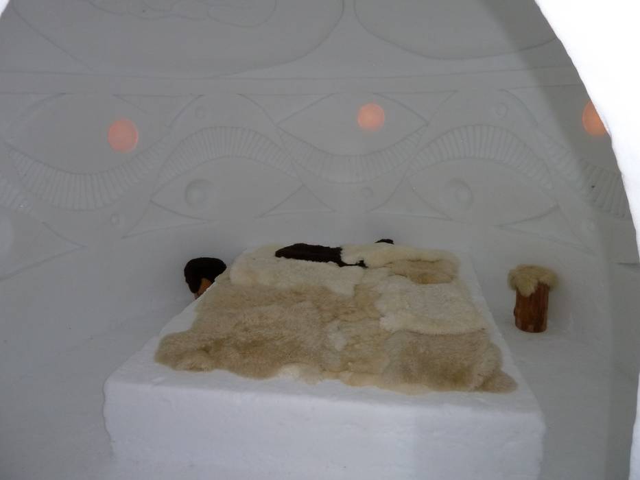 Eine Übernachtung im Iglu-Dorf ist ein einmaliges Erlebnis. Das gesamte Iglu besteht aus Schnee und Eis. Die Wände werden thematisch verziert und es gibt einen Whirlpool.