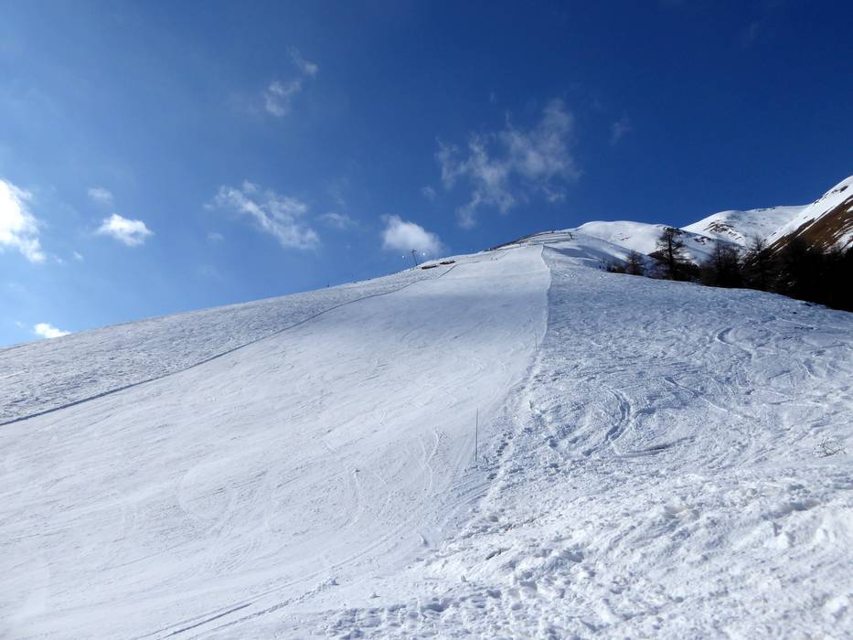 Das Skigebiet Zuoz bietet im oberen Bereich schwere Pisten und einige tolle Freeridemöglichkeiten.