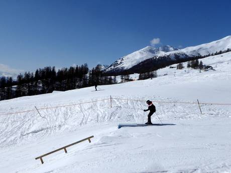 Das Skigebiet Zuoz bietet einen kleinen Snowpark mit Funslope im Talbereich.