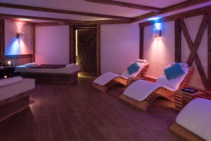 Im Bad findet man eine große Whirlwanne und der Ausblick auf die umliegenden Berge ist grandios. Ein kleiner aber feiner Wellnessbereich mit einem Schwimmbad, Sauna, Dampfbad und Massagen runden das Angebot ab.