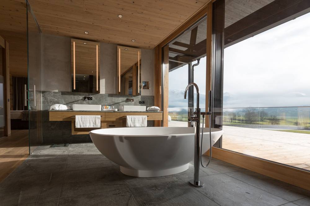 Die Sportresidenz Zillertal ist der Stern am Zillertaler Hotelhimmel und liegt in Uderns, direkt inmitten des Golfplatzes. Die 33 Zimmer & Suiten sind rund um das Hotel angeordnet und bieten somit fast alle einen Balkon mit herrlichem Bergblick. Das Hotel wurde harmonisch in die Landschaft integriert. Die Zimmer sind mit edlen Hölzern, geschmackvollen Steinfußböden in den Bädern und großen Panoramafenstern ausgestattet. Sämtliche Zimmer haben eine eigene Infrarotkabine. Hier bleiben keine Wünsche offen. Die Minibar ist gefüllt mit kostenlosen alkoholfreien Getränken. Die beiden Suiten bieten zusätzlich noch jeweils eine eigene Sauna und gewisse Extras.