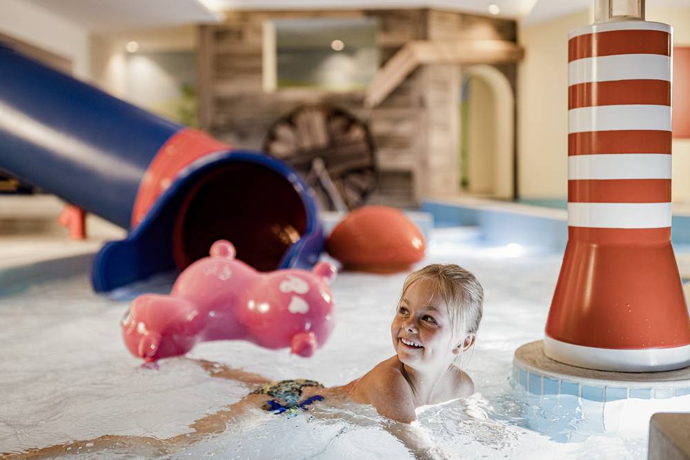 Adults Only Spa mit beheiztem Indoor- und Outdoorpool, stilvollen Ruheräumen, Saunen mit Aufgüssen und exklusiven Anwendungen. Family Spa mit Breitwellenrutsche, In- & Outdoorpools, Babybecken und Familiensauna für gemeinsame Wohlfühlmomente.