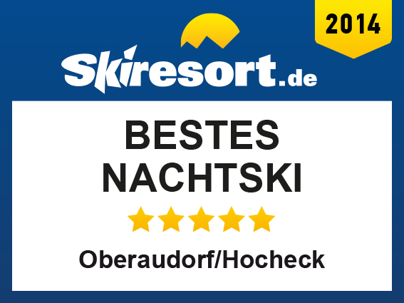 Das Nachtski in Oberaudorf/Hocheck wurde von Skiresort.ch, dem weltweit größten Testportal von Skigebieten, als bestes Nachtski 2014 ausgezeichnet.