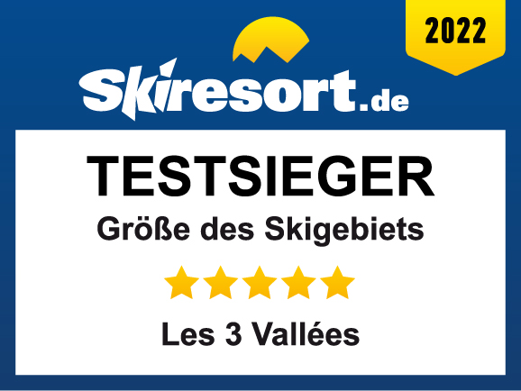 Das Skigebiet Les 3 Vallées wurde von Skiresort.ch, dem weltweit größten Testportal von Skigebieten, als Testsieger 2022 in der Kategorie „Größe des Skigebiets“ ausgezeichnet.