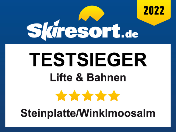 Das Skigebiet Steinplatte/Winklmoosalm wurde von Skiresort.ch, dem weltweit größten Testportal von Skigebieten, als Testsieger 2022 in der Kategorie „Lifte & Bahnen“ ausgezeichnet.