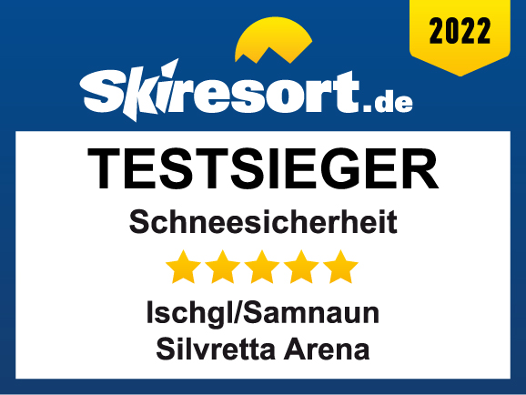 Das Skigebiet Ischgl/Samnaun – Silvretta Arena wurde von Skiresort.ch, dem weltweit größten Testportal von Skigebieten, als Testsieger 2022 in der Kategorie „Schneesicherheit“ ausgezeichnet.