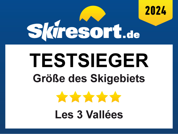 Das Skigebiet Les 3 Vallées wurde von Skiresort.ch, dem weltweit größten Testportal von Skigebieten, als Testsieger 2024 in der Kategorie „Größe des Skigebiets“ ausgezeichnet.