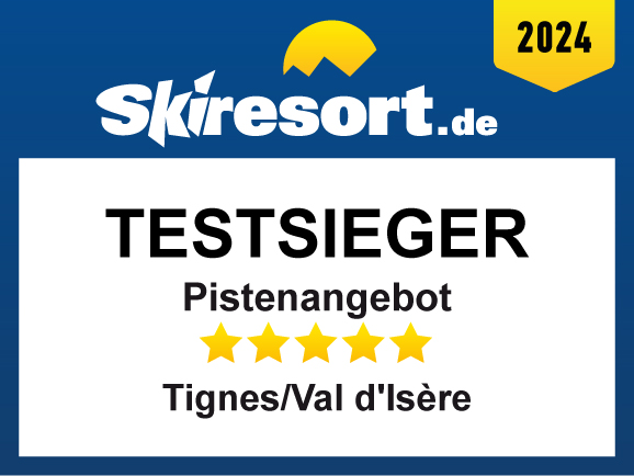 Das Skigebiet Tignes/Val d'Isère wurde von Skiresort.ch, dem weltweit größten Testportal von Skigebieten, als Testsieger 2024 in der Kategorie „Pistenangebot“ ausgezeichnet.