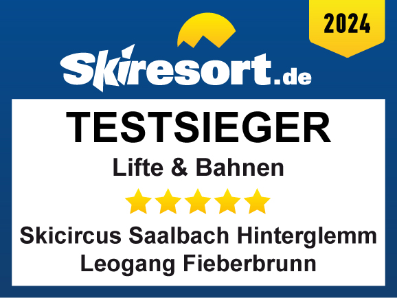 Das Skigebiet Saalbach Hinterglemm Leogang Fieberbrunn (Skicircus) wurde von Skiresort.ch, dem weltweit größten Testportal von Skigebieten, als Testsieger 2024 in der Kategorie „Lifte & Bahnen“ ausgezeichnet.