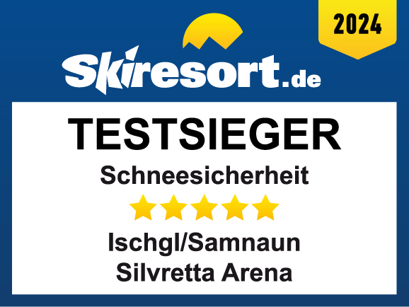 Das Skigebiet Ischgl/Samnaun – Silvretta Arena wurde von Skiresort.ch, dem weltweit größten Testportal von Skigebieten, als Testsieger 2024 in der Kategorie „Schneesicherheit“ ausgezeichnet.