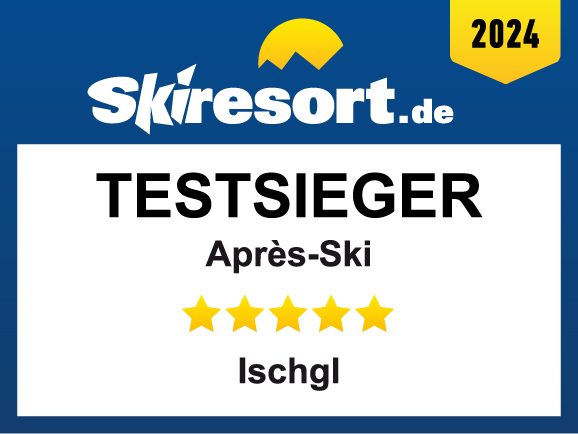 Ischgl wurde von Skiresort.ch, dem weltweit größten Testportal von Skigebieten, als Testsieger 2024 in der Kategorie „Après-Ski“ ausgezeichnet.