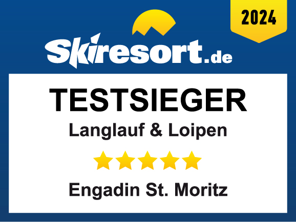 Engadin St. Moritz wurde von Skiresort.ch, dem weltweit größten Testportal von Skigebieten, als Testsieger 2024 in der Kategorie „Langlauf und Loipen“ ausgezeichnet.