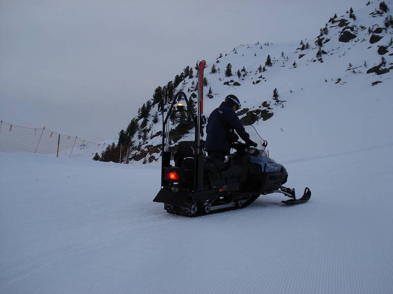 6. 30 Uhr: Oliver Kern ist bereits auf dem Weg zum Sonnklar auf 2.400 m per Skidoo. Start erfolgt ca. kurz vor 7 Uhr.