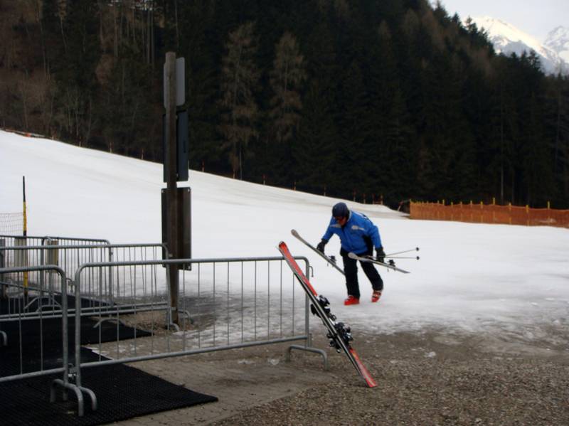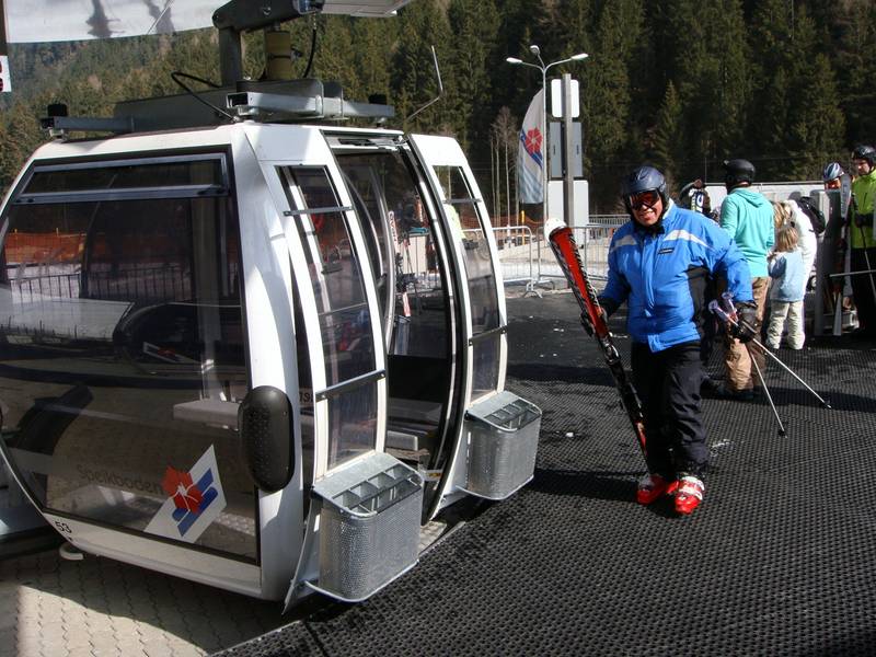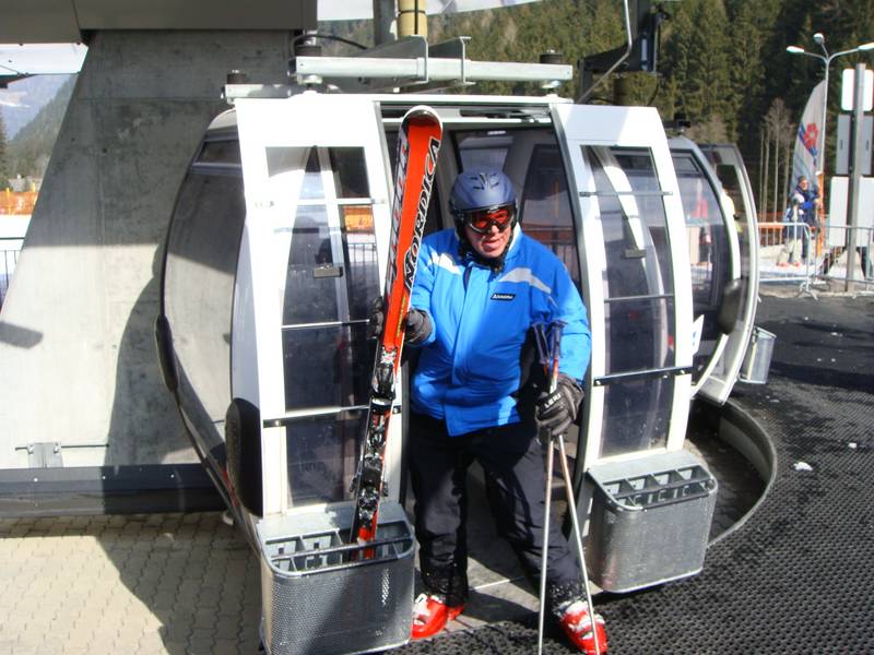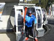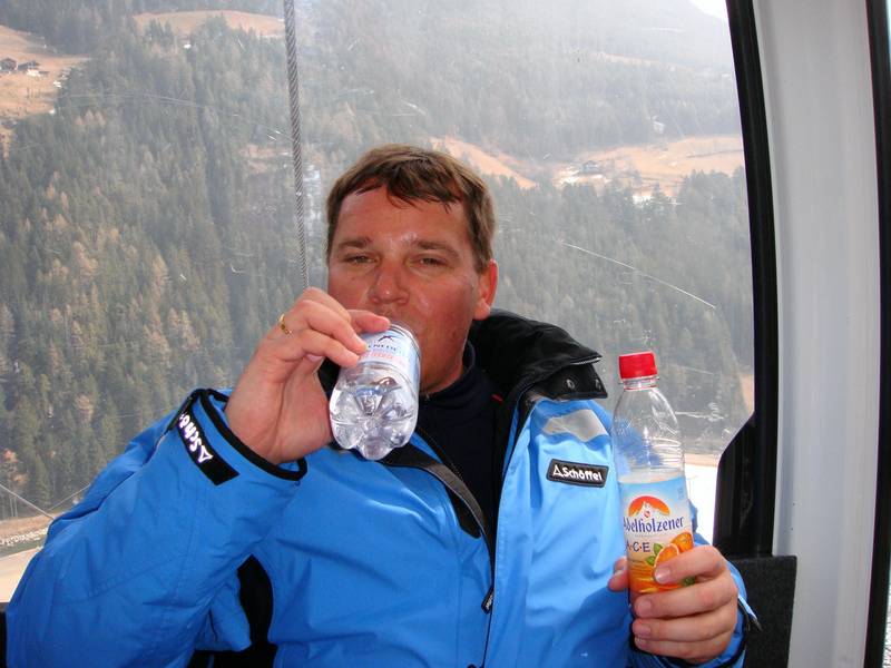 12.00 Uhr: Oliver Kern ist gerade in der Gondel. Dies ist die 24. Auffahrt. 22.924 Höhenmeter sind um Punkt 12 Uhr geschafft. Die Beine fangen langsam an zu brennen, da die Temparaturen recht frühlingshaft sind und erste größere Wellen auf der Talabfahrt entstanden sind. Die top-präparierten Pisten von heute Vormittag mussten leider dem strahlenden Sonnenschein weichen.