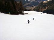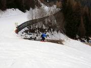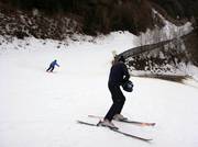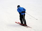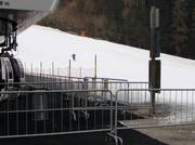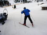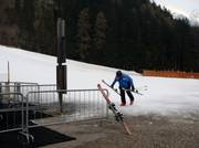 14.35 Uhr: Oliver Kern kämpft um den Weltrekord. Die Piste im unteren Bereich ist sehr weich und es gibt sehr viele, anstrengende Hügel. Das Thermometer zeigt 12 Grad plus. Ab 16.30 Uhr wird frisch präpariert und er wird bis ca. 22 Uhr alleine auf der Piste sein.