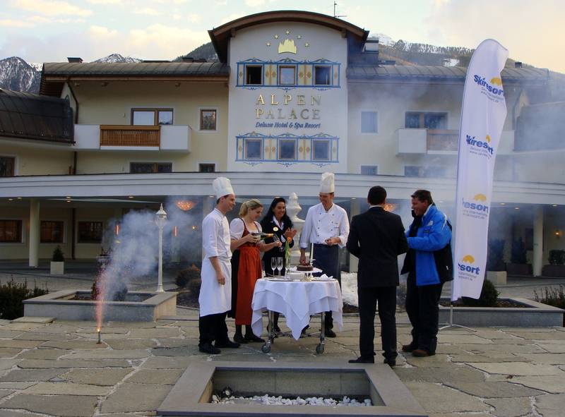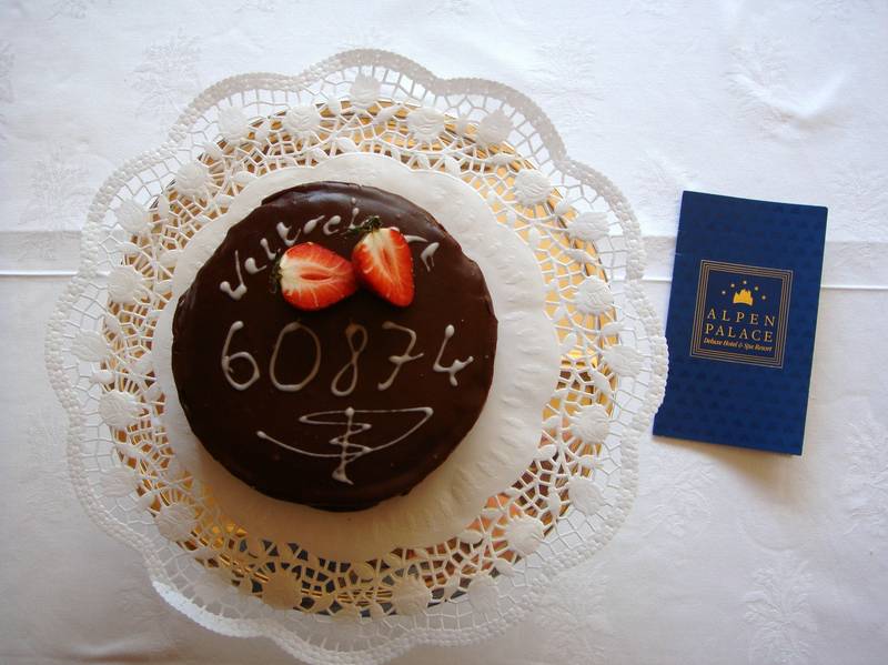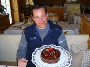 ...am nächsten Tag: Das Team vom Hotel Alpenpalace überrascht Oliver Kern mit einem Weltrekord-Kuchen. Am Nachmittag wird mit Champagner angestoßen.